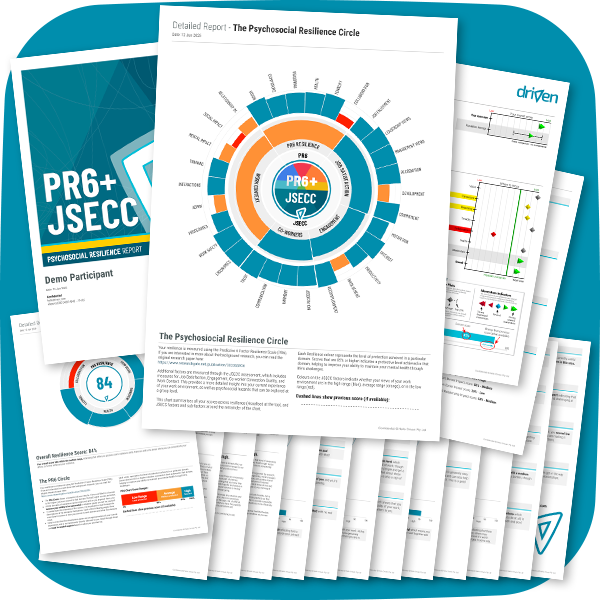Team & Individual resilience is measured using the Predictive 6 Factor Resilience Scale (PR6).